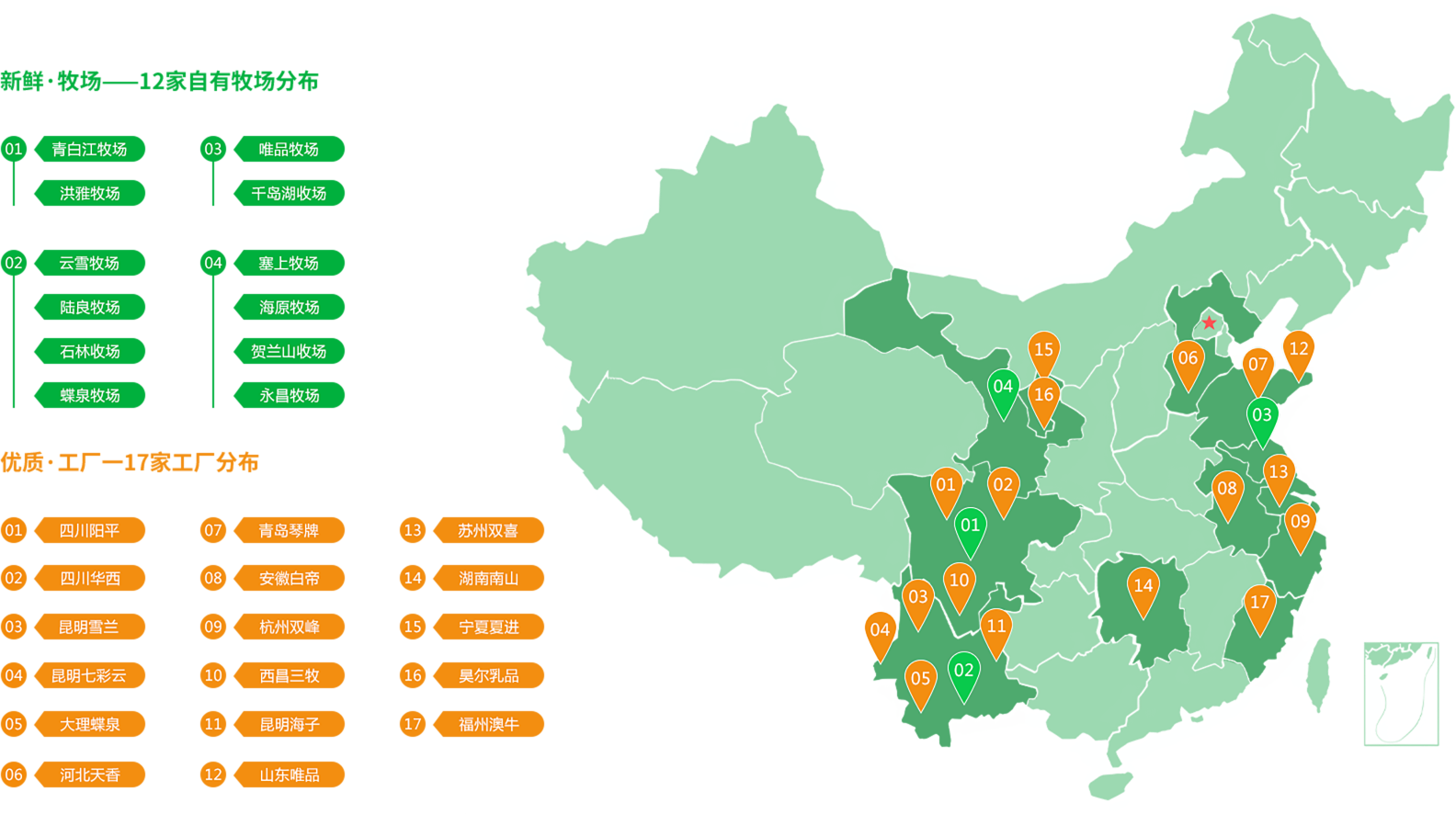 中国最具有活力与创新的企业之一。公司聚焦低温乳品,立足西南,并深度布局华东、华中、华北、西北市场,构建了以“鲜战略”为核心价值的城市型乳企联合舰队。公司为用户提供优质营养的乳品,个性而多样化的消费体验,主张鲜活的生活态度,致力于成为“新鲜一代的选择”。