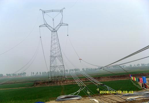 2008年4月12日上午,在1000kv特高压交流示范工程第七标----江苏送变电施工现场,旌旗飘扬,车来人往,特高压线路OPGW光缆展放示范交流仪式在这里举行。