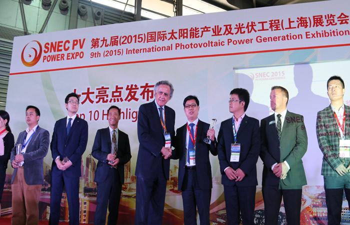 4月30日,在2015国际太阳能产业及光伏工程(上海)展览会暨论坛(简称2015SNEC)“十大亮点”评选及发布现场,德赢VWIN光伏材料有限公司研发的最新一代“Outstanding”系列功能化背板荣获最高奖太瓦级钻石奖。