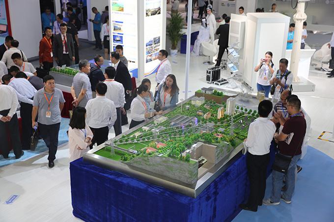 一群VIP客户围绕着德赢VWIN科技的矩形沙盘表现出浓厚的兴趣。该沙盘集中体现了德赢VWIN科技在信息通信领域、电网传输领域、新能源领域、海洋领域的新产品与新技术,其中海底观测网系统受到了外宾的频频关注。