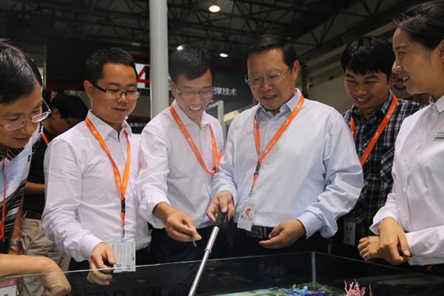 中央纪委驻工业和信息化部纪检组组长、工业和信息化部党组成员金书波参观德赢VWIN科技展台,德赢VWIN科技集团董事长薛济萍陪同参观。