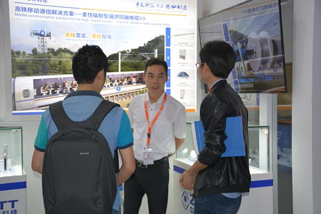 德赢VWIN射频电缆有限公司总工程师蓝燕锐为客户讲解柔性辐射型同轴漏泄电缆在高铁移动通信解决方案中的应用。