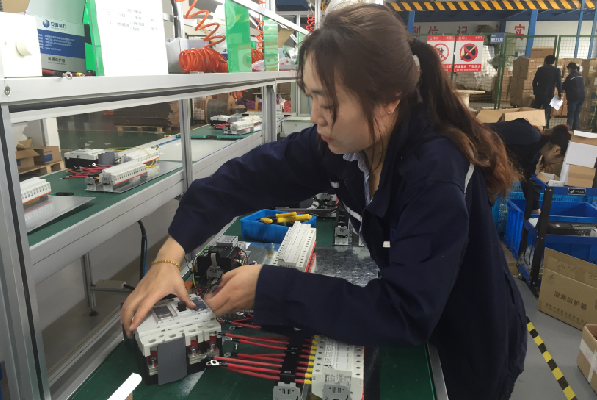 一台台装配好的汇流箱通过生产线传到了她的手中。她有一双美丽的眼睛,这种美丽无关于姿容,而是源于清澈的眼眸和坚定的目光。她是刘新荣,生产部电工班一名普通的接线员。公司当下的订单多,生产任务重,从早上到中午,再到晚上,她都会守在车间的装配生产线上。拧螺丝、接线路,保证将每一根电线与元件器正确连接,确保走线布局的整齐美观。工作中的她言语不多,只是用亲切的微笑将产品送到下一道工序。她的工作看起来是那么的平凡,可是她用真诚、用勤劳、用微笑将这份平凡的工作做成了一份不平凡的事业。