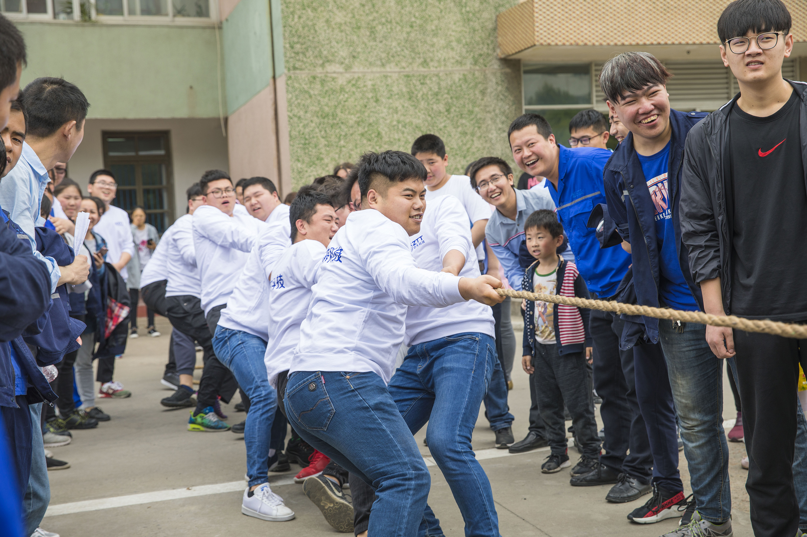 在拔河现场,当比赛哨声响起,只见参赛的队员们紧握长绳,卯足了劲拼命往后拉,现场观战的员工们自发组成啦啦队为比赛队员加油呐喊,哨子声、呐喊声此起彼伏,将比赛推向一个又一个高潮。