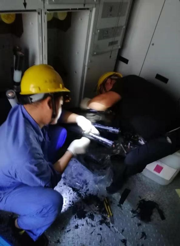 据项目负责人薛峰介绍,项目后期因台风天气,再加上海上潮汐变化,德赢VWIN工程电力工程部海上电缆终端附件安装人员面临着最大的工期压力。为了保证工程按期交付,项目部人员自2018年底开工以来就一直奋战在施工一线,为了抢工期,吃住都在船上。9月底,业主由一条敷缆船增派为三条敷缆船,德赢VWIN工程立即紧跟业主行动,抽派3组共9人负责电缆附件安装和光缆接续,坚守现场24小时待命,5天内完成30组电缆终端附件的安装,并且每套都通过检验调试,符合质量标准,现已正常带电运行。