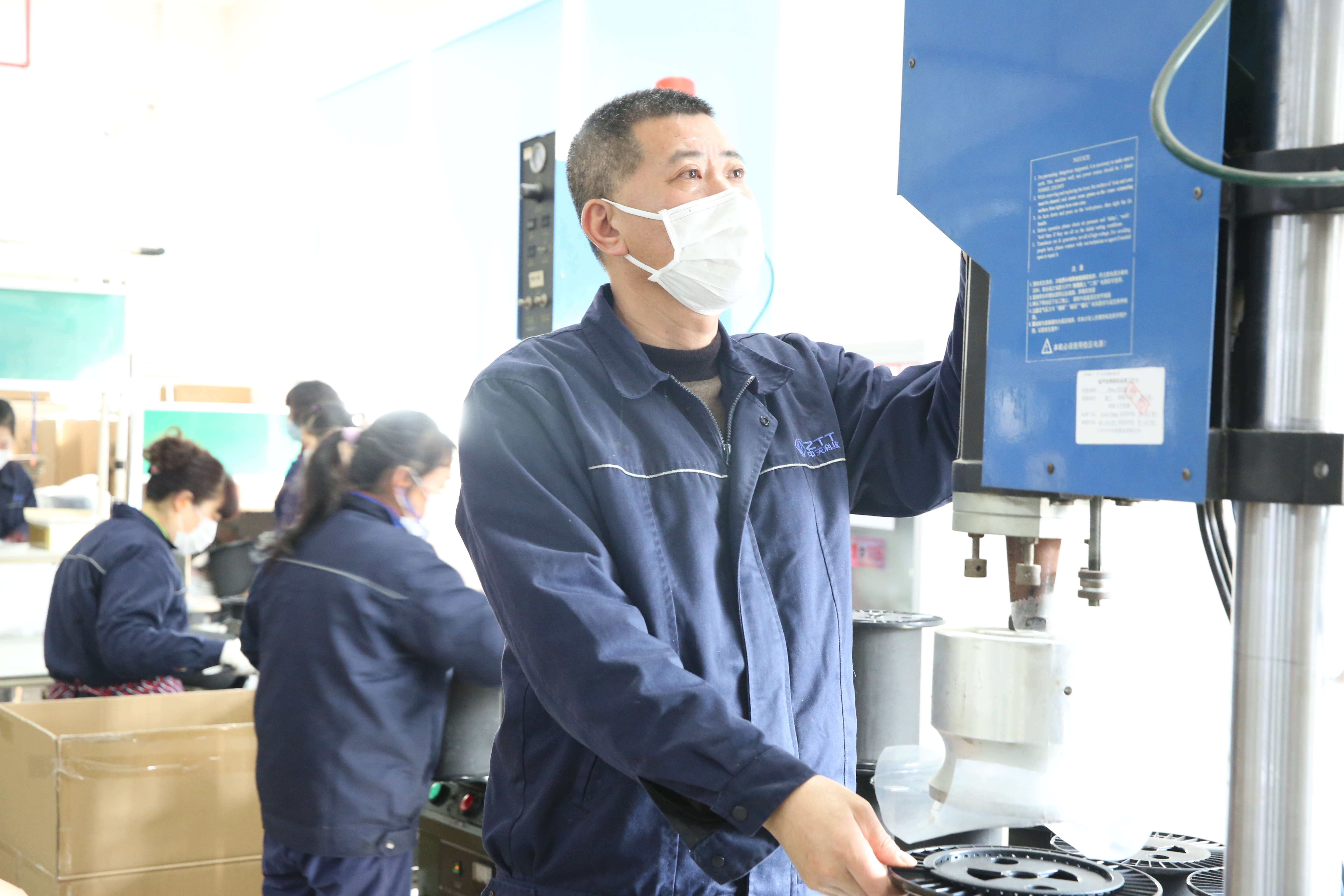 复工后光纤盘产品需求量大,交货期紧,材料总厂注塑分厂设备管理员张兵一丝一毫没有放松,时刻关注着工厂的设备,以确保产品顺利交付。