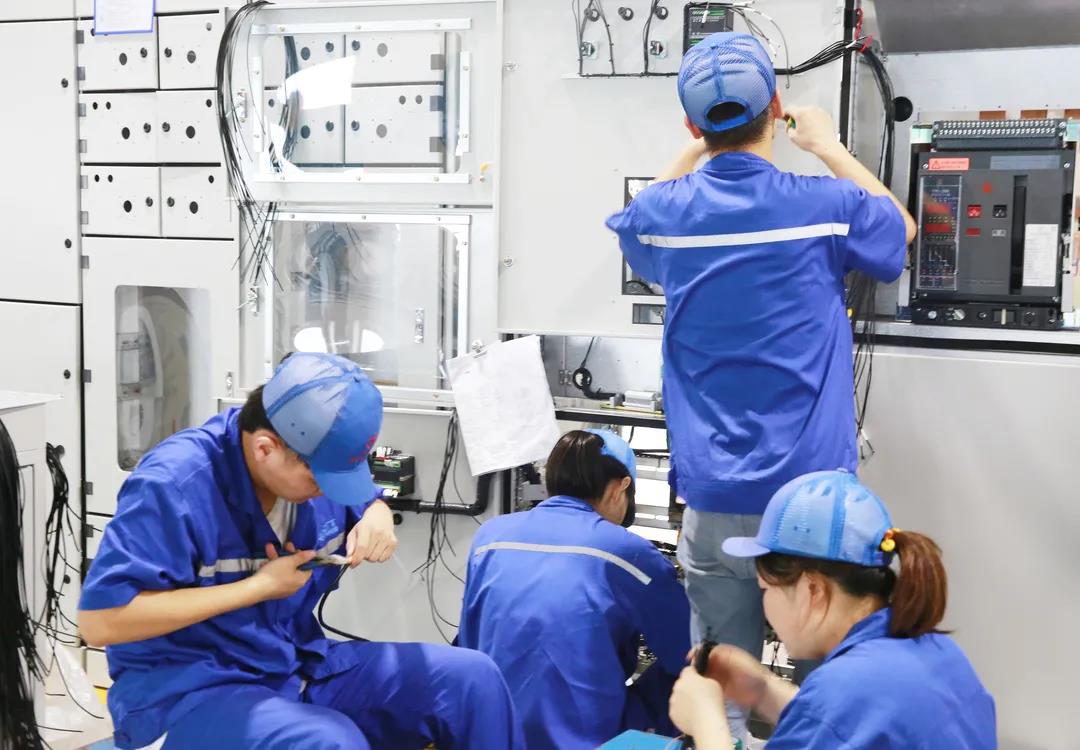 近日,德赢VWIN电气面临多个开关柜项目密集交付。二次接线是开关柜生产中最繁琐、耗时的工序,其工艺质量直接影响到产品的视觉体验。虽然车间里高温难耐,但是员工们工作热情高亢,正全神贯注地投进行接线操作。